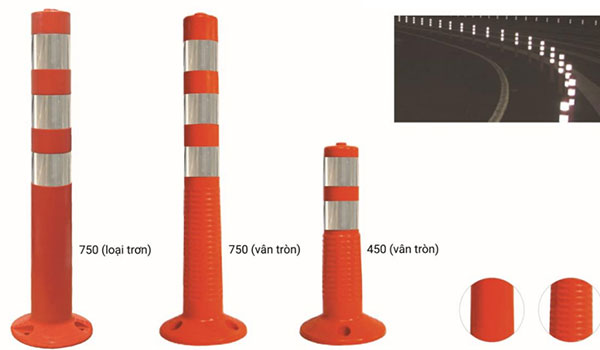 + Sản phẩm cọc tiêu phân làn giao thông hình trụ (cọc trụ phân làn) được lắp đặt với mục đích phân làn, dẫn hướng phương tiện trên cao tốc, quốc lộ hoặc tại các tuyến đường trong khu đô thị.